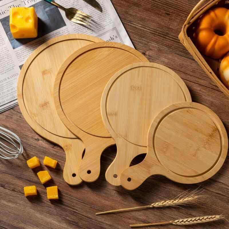 木製トレイ 円形 竹木製 ウッドプレート ピザボード パン 寿司 ケーキ ステーキ サービングボード 和風 洋風 無垢材 天然素材 ナチュラル カフェ風 キッチン用品 ダイニング 食卓 ランチプレート ワンプレート