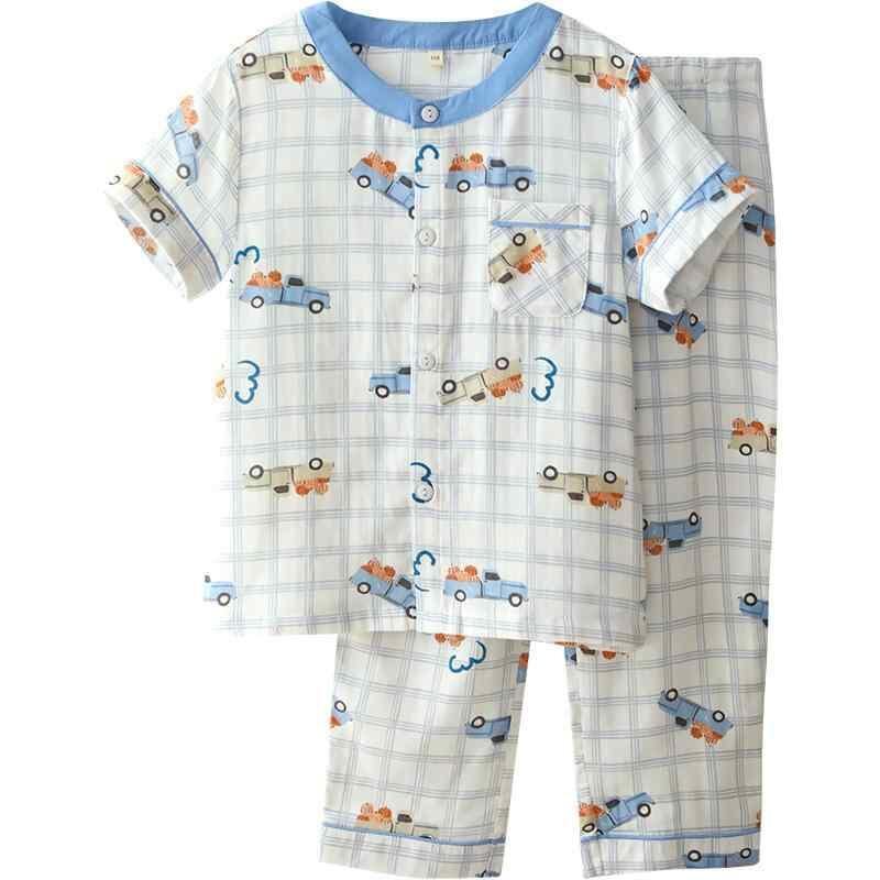 パジャマ 男の子 半袖 ロングパンツ 綿100% ダブルガーゼ 薄手 吸汗速乾 柔らかな肌触り 丸首 車柄 かわいい ルームウェア セットアップ