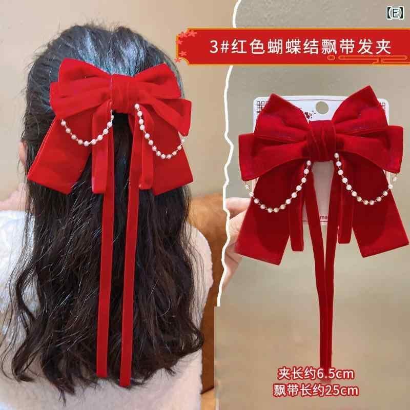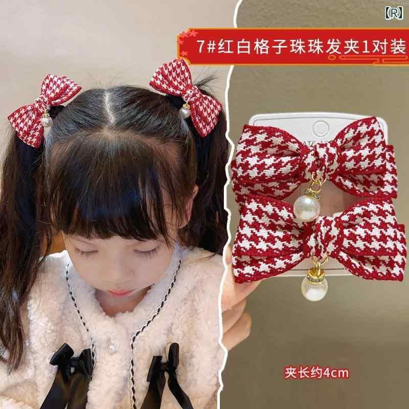 ヘアクリップ キッズ 女の子 赤 レッド ベルベット ベロア リボン 蝶結び かわいい 髪飾り 髪留め お正月 迎春 お祝い フォーマル イベント ペアクリップ 2個セット