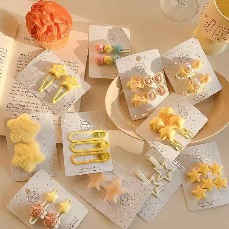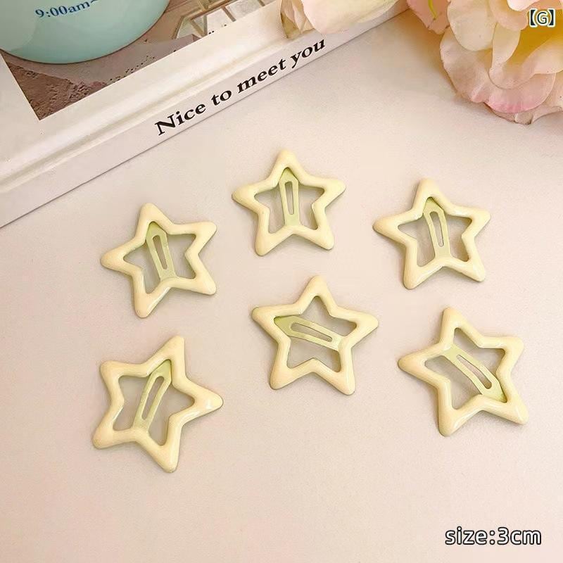 ヘアクリップ 女の子 キッズ 前髪 後れ毛 ダックビルクリップ サイドクリップ 星形 メタル かわいい ドーパミンイエロー カラフル ポップ 髪飾り
