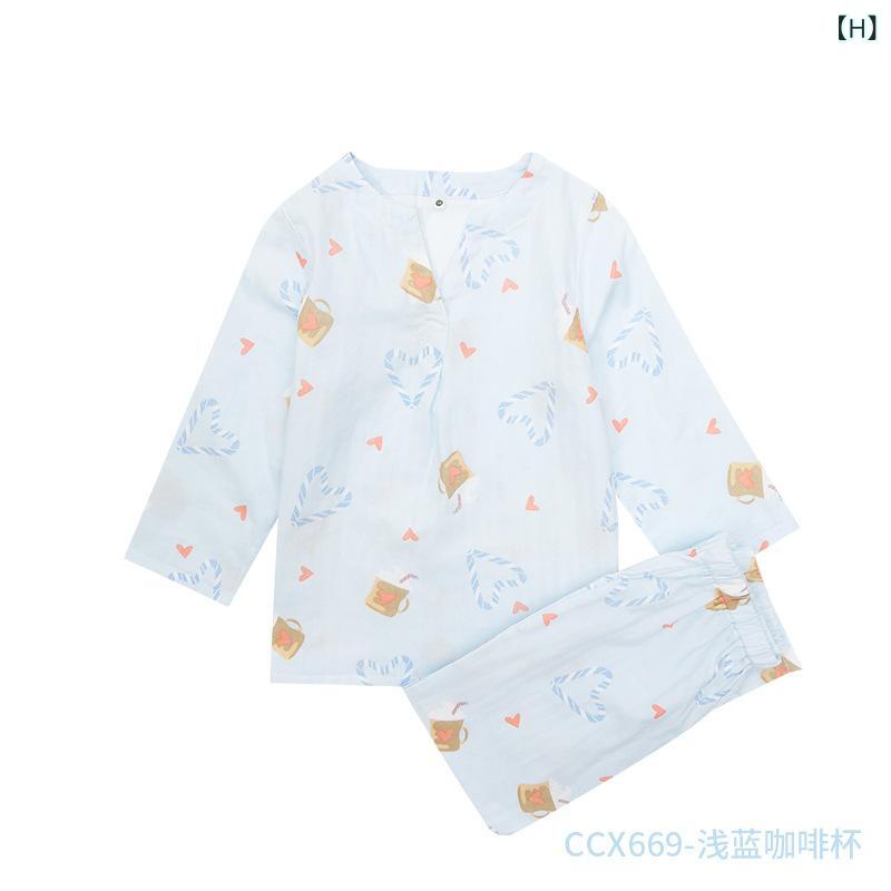 パジャマ キッズ 男女兼用 綿100% ダブルガーゼ 長袖 前開き ルームウェア 春秋 通年 吸湿速乾 アニマル柄 カートゥーン柄 かわいい 親子コーデ セットアップ シンプル