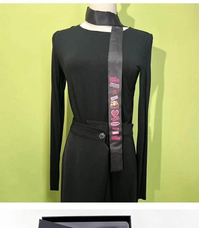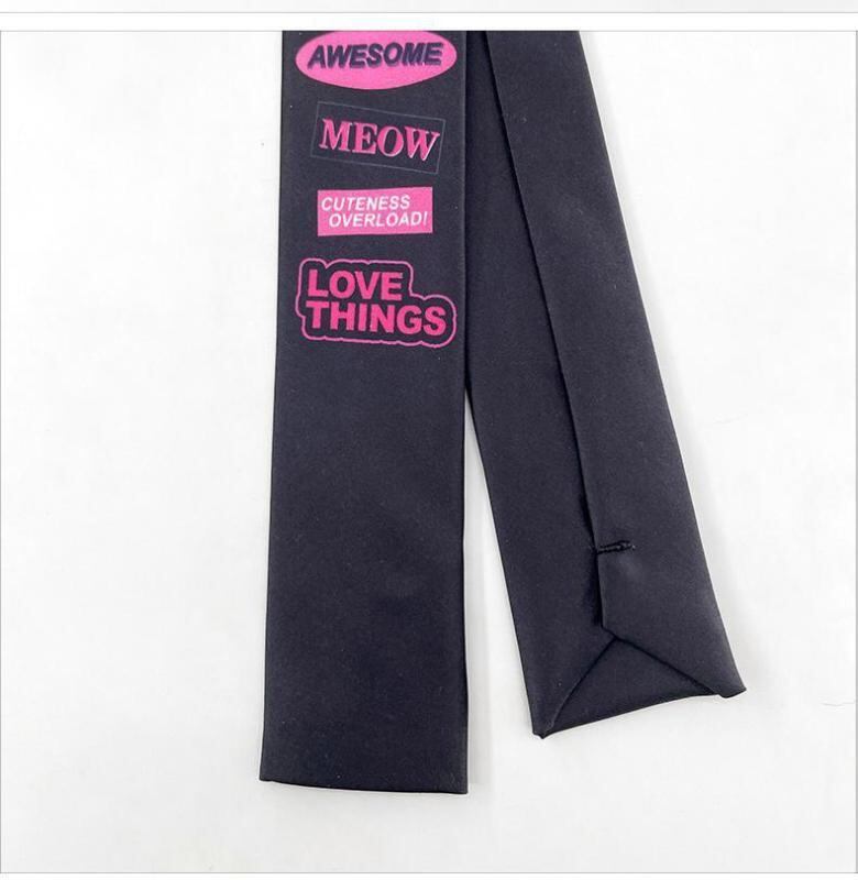 ネックアクセサリー 男女兼用 インスタ映え JKスタイル Y2Kファッション トレンド 個性的 デザイン ナロー スクエアタイ リボンタイ シルクスカーフ ブラック ファッション小物