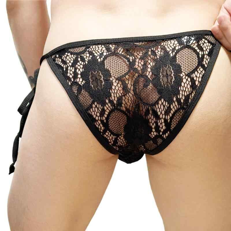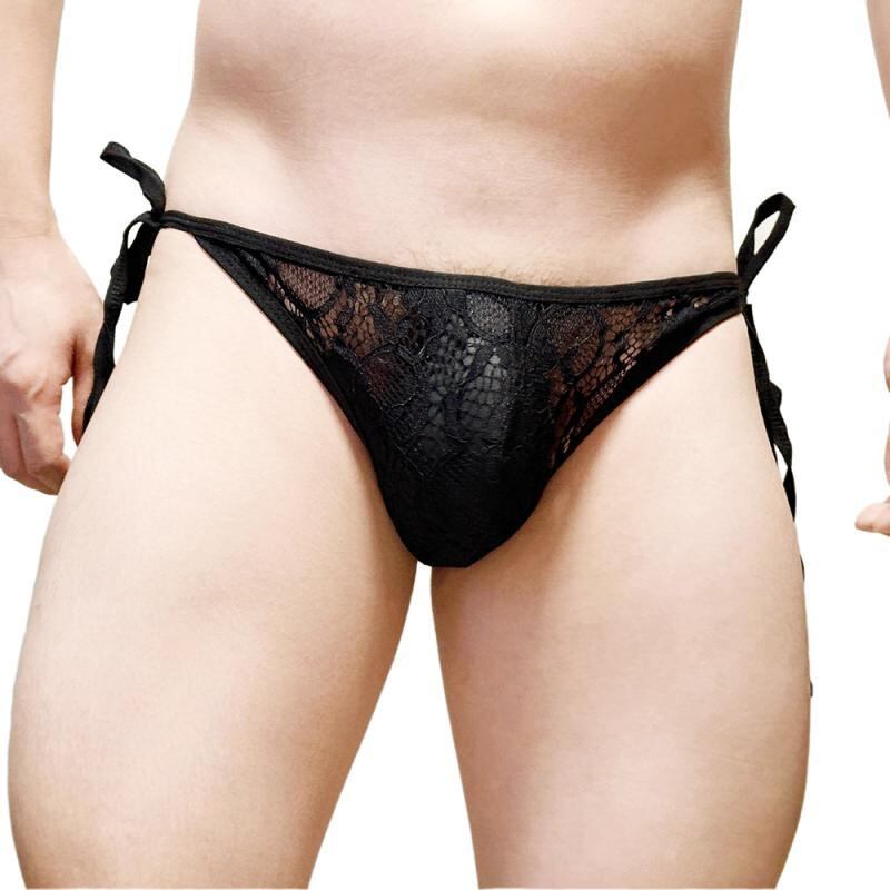 メンズ下着 ローライズ レース 透明 ビキニ Tバック 三角パンツ ナイロン スパンデックス 通気性 速乾性 ヒップアップ 花柄 ブラック ホワイト ブルー ピンク スキンカラー タイトフィット サイドオープン 男性用インナー