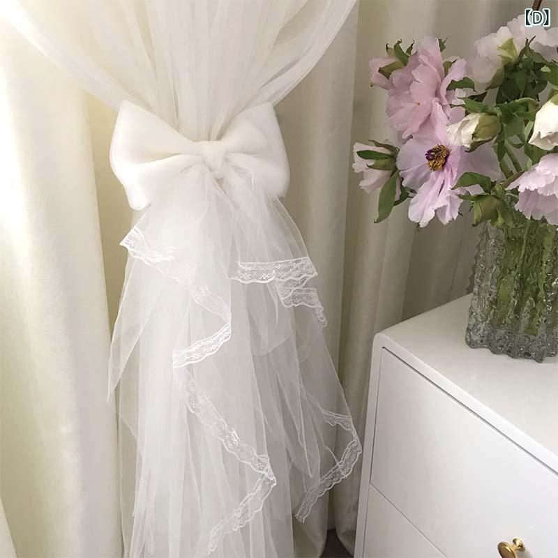 カーテンタッセル 大型 60cm リボン レース 蝶結び DIY クラフト ハンドメイド ファンタジー ファブリック エレガントな窓辺の装飾