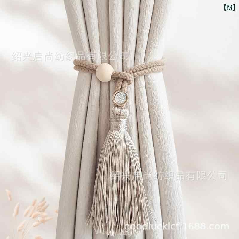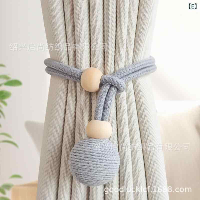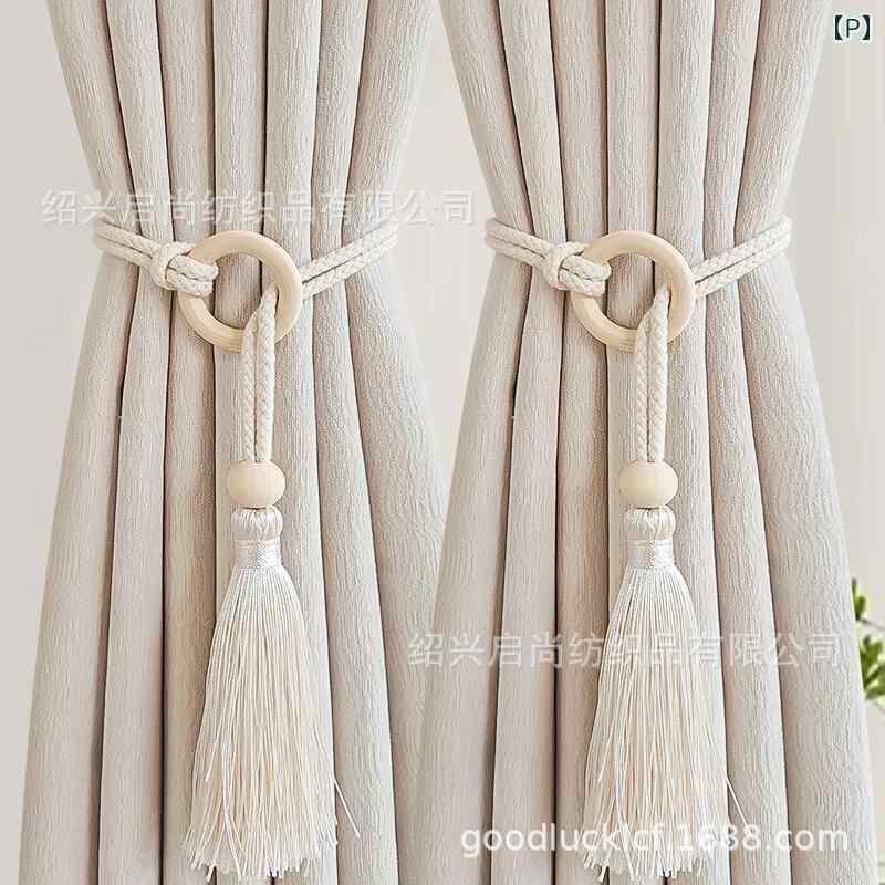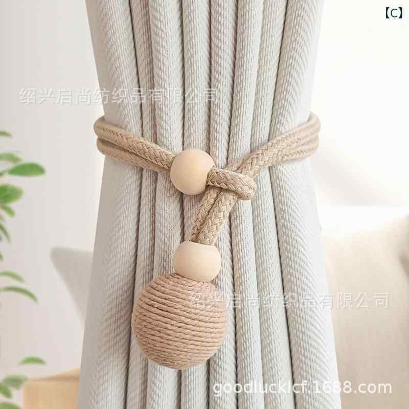 カーテンタッセル 調節可能 コットンロープ 編み込み ボール飾り シンプル モダンインテリア ナチュラルテイスト 綿素材 リビング 寝室 窓周り おしゃれ 長さ調整可能 アイボリー ベージュ グレー