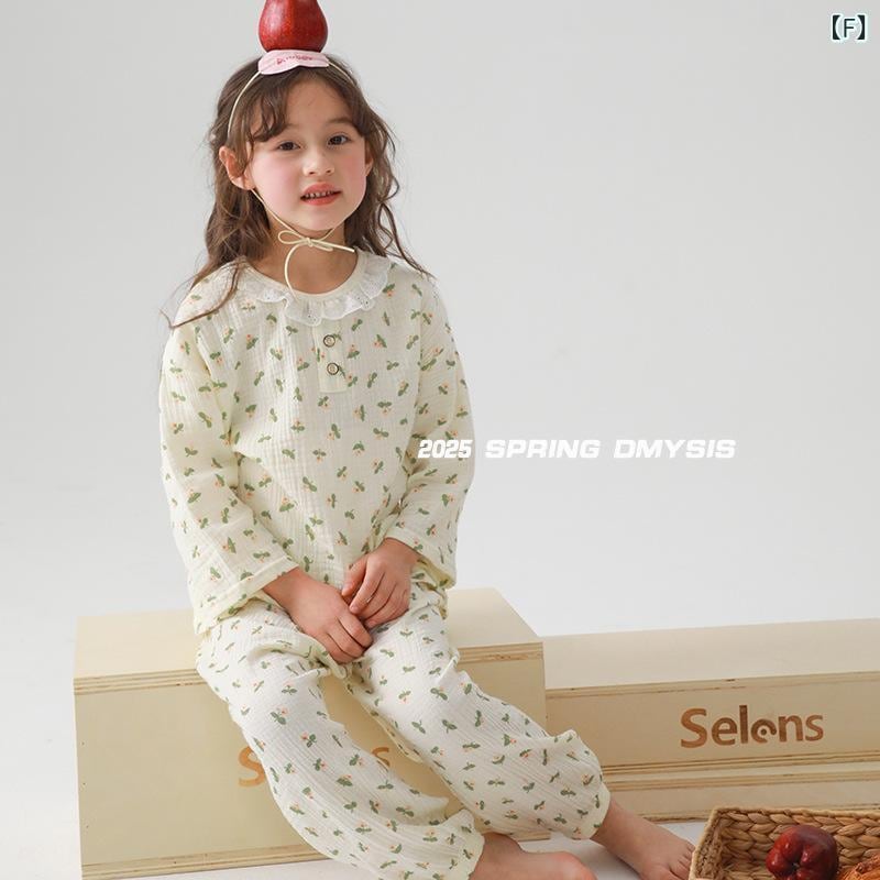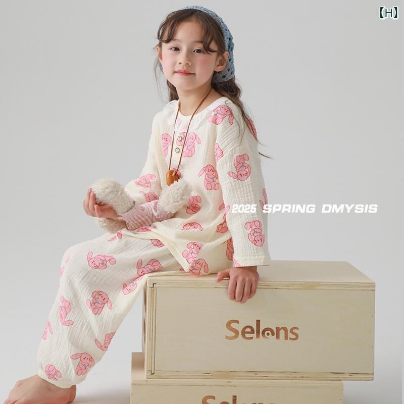 キッズ パジャマ ルームウェア 綿100% ガーゼ ダブルガーゼ 男女兼用 上下セット プルオーバー 部屋着 寝間着 コットン 吸湿速乾 通気性 柔らか 肌触り良い 総柄 キャラクター柄 冷房対策
