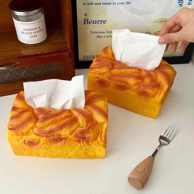 ティッシュケース かわいい おしゃれ トースト 食パン型 ティッシュボックス 高級感 高見え リビング 洗面所 車内 卓上 家庭用 ポリウレタン製 多機能 収納ボックス モダン インテリア