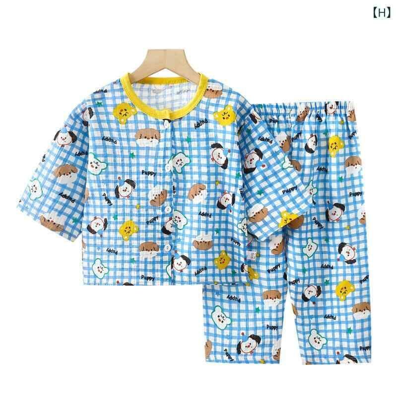 パジャマ キッズ ダブルガーゼ 綿100% 薄手 吸湿速乾 上下セット 冷房対策 部屋着 ルームウェア かわいい カートゥーン柄 肌触りやわらか