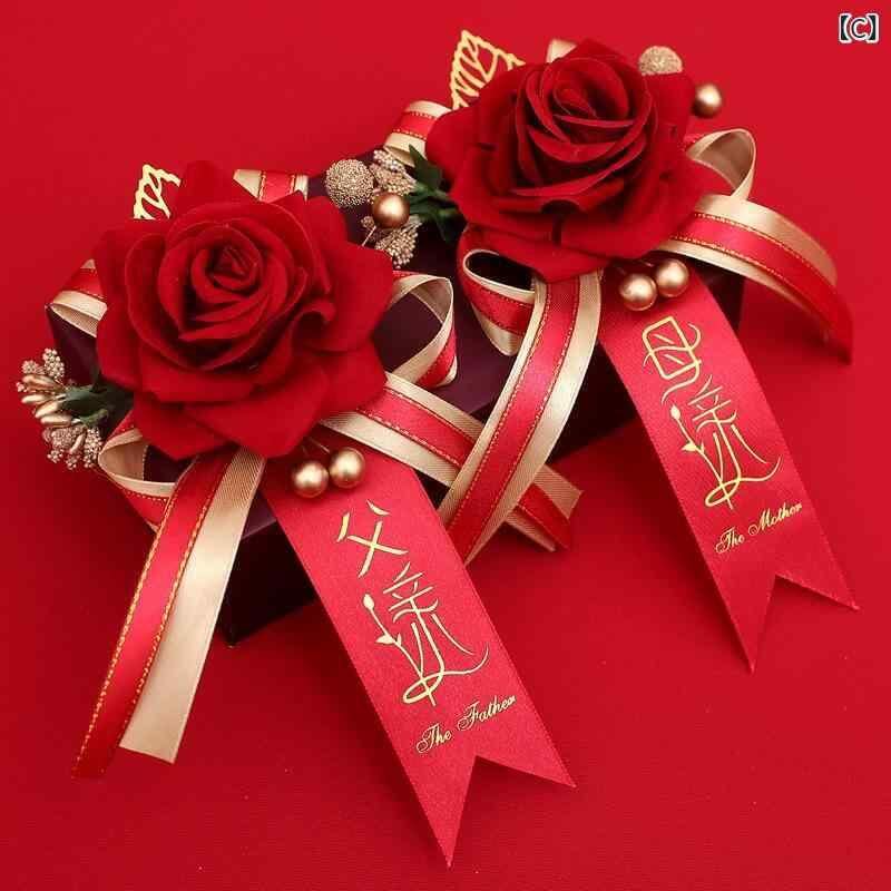 コサージュ ウェディング 結婚式 ブライダル 新郎 新婦 両親 家族 ゲスト 介添人 友人用 ブートニア 襟花 ゴールドパール飾り フルセット 一式 披露宴 挙式 入場式 フォーマルシーン イベント アイテム