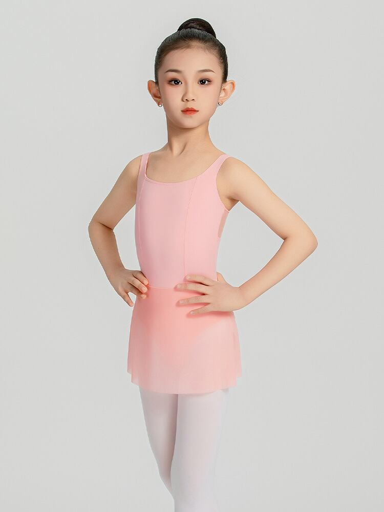 レオタード キッズ 女の子 子供服 女児 バレエ ダンス 体操 レッスン着 練習着 衣装 発表会 スカート付き ショート丈 一体型 ボディスーツ 伸縮性素材 化学繊維混紡