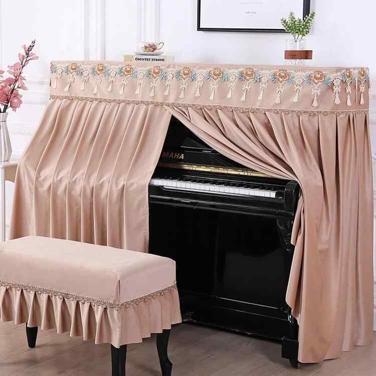 ピアノカバー ピアノ椅子カバー セット 高級感 エレガント レース 防塵 花柄刺繍 ジャカード織り シルク調 電子ピアノ対応 家庭用 汎用タイプ