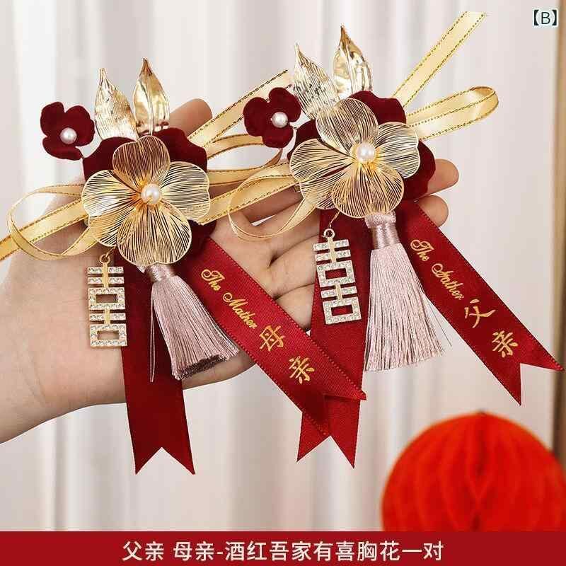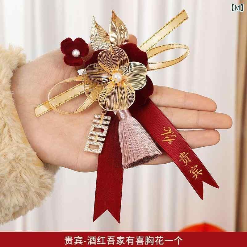 コサージュ ブートニア 結婚式 ウェディング 新郎 新婦 両親 父親 母親 家族 親族 ゲスト用 造花 胸飾り フォーマル 披露宴 パーティーセレモニー ワインレッド シャンパン ボルドーカラー アートフラワー