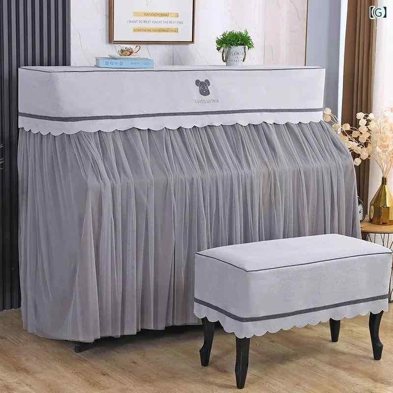 ピアノカバー フルカバー 全面保護 防塵カバー ほこりよけ 高級感 モダン シンプル 現代的 織物素材 レースデザイン カメリア柄 ベア柄 カフェオレ グレー ブルー