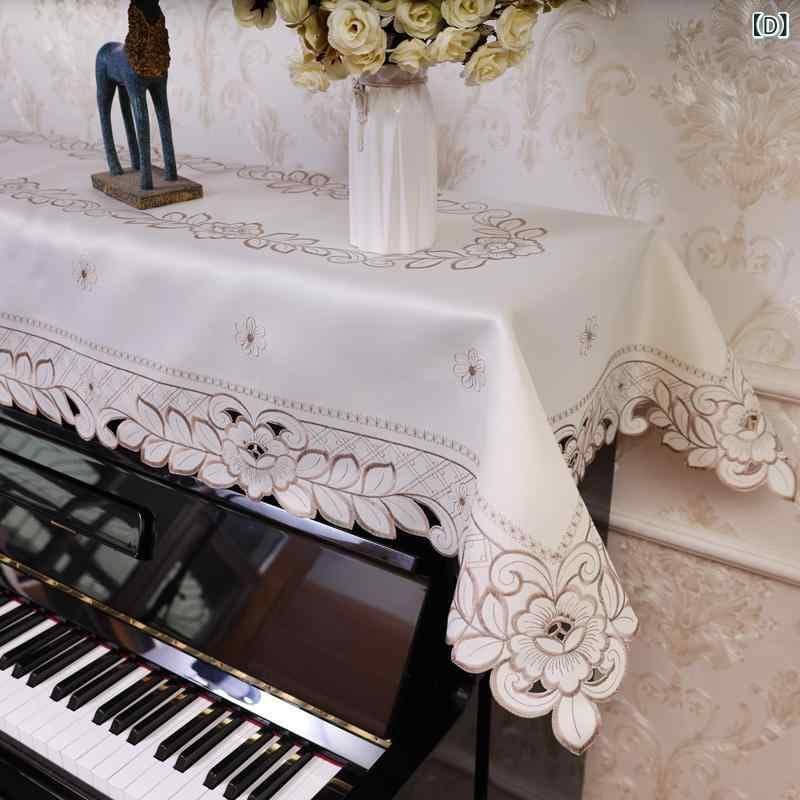 ピアノカバー シンプル モダン ヨーロピアンテイスト 布製 刺繍 花柄 ハーフカバー 防塵 トップカバー 保護カバー 室内用 ホコリよけ おしゃれ ブルー レッド ネイビー 無地