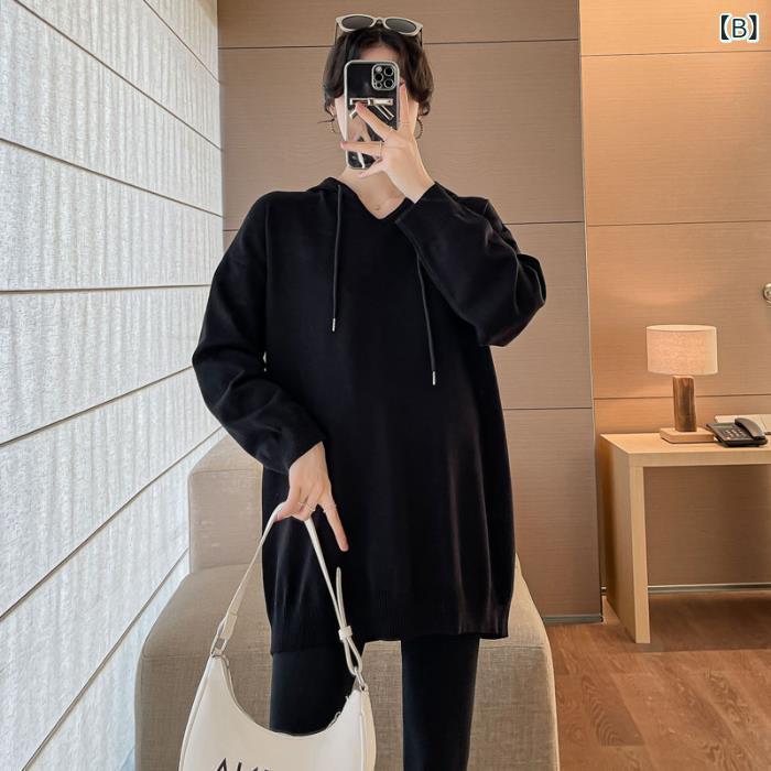 妊婦服 レディース 長袖 フード付き パーカー ストライプ Tシャツ ゆったり 大きいサイズ マタニティウェア 春 秋 カジュアル ニット素材 伸縮性 デイリーユース ルームウェア 杏色 ブラック