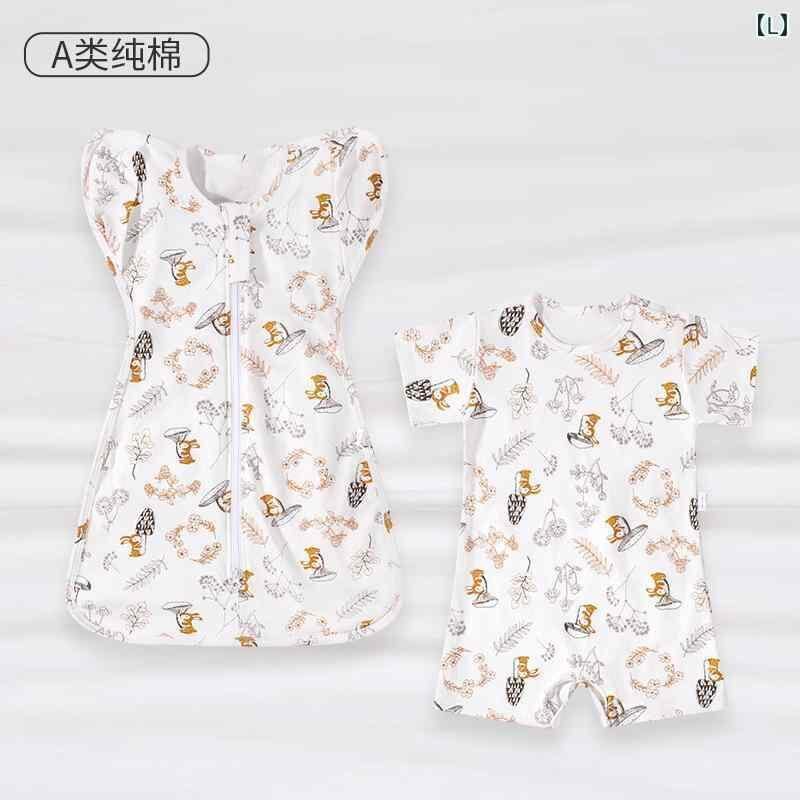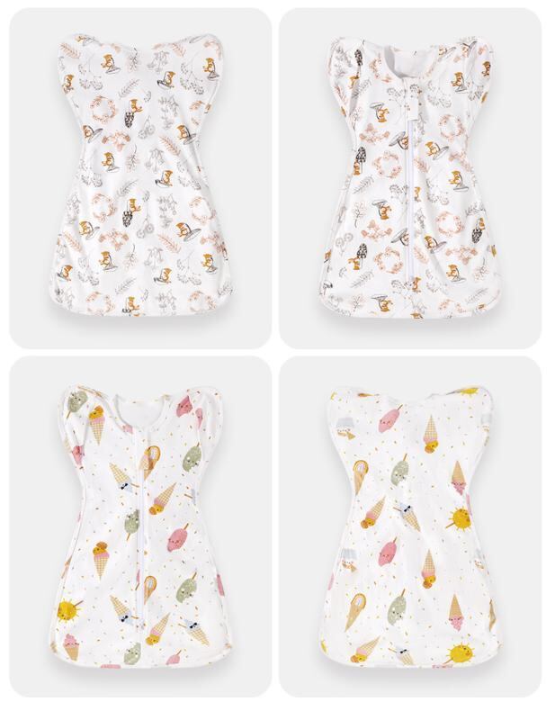 スリーパー 新生児 ベビー モロー反射対策 夜泣き対策 おくるみ スワドル 腕固定 夏用 薄手 オールシーズン ベスト型 綿100% 抗菌 保温 防臭 吸湿速乾 かわいい キャラクター柄