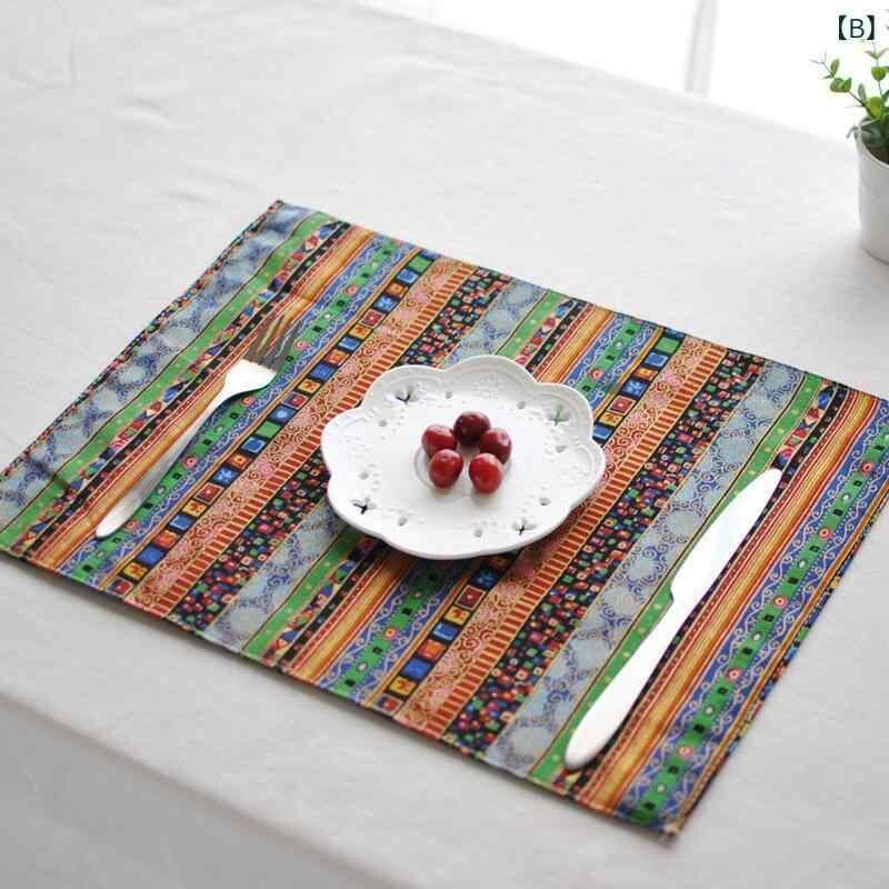 テーブルマット 新中華風 民族風 ボヘミアン風 二重層 布製 長方形 ダイニングテーブルクロス ランチョンマット 食卓ナプキン 綿麻素材