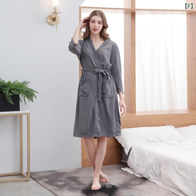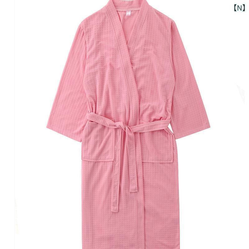 バスローブ 男女兼用 ワッフル生地 吸水速乾 薄手 軽量 ルームウェア 部屋着 ガウン お風呂上がり リラックスウェア シンプル カジュアル Vネック ポリエステル ホテル仕様