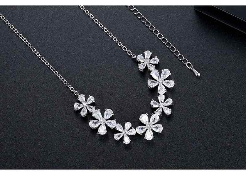 ネックレス レディース 花柄 フラワーモチーフ 幾何学模様 銅製 ジルコニア クロスチェーン 韓国ファッション おしゃれ キラキラ 輝く エレガント フェミニン 万能 アクセサリー