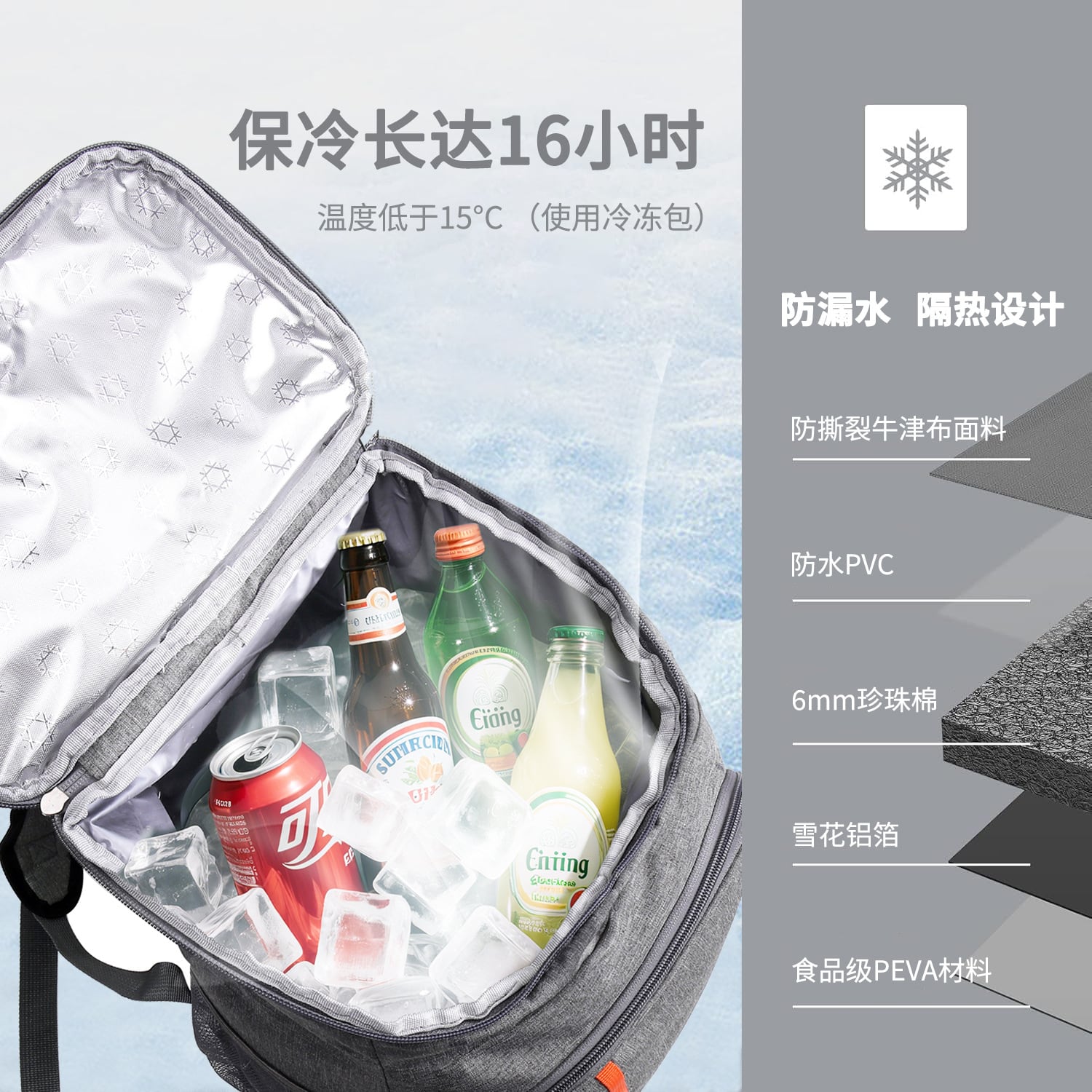 ・カテゴリ: クーラーバッグ ・素材: オックスフォード生地、EVAフィルム ・スタイル: カジュアルアウトドア ・タイプ: バックパック ・機能: ポータブル、折りたたみ式 ・容量: 18L ・カラー展開: ブルー、ブラック、グレー、オレンジ、カーキ、迷彩