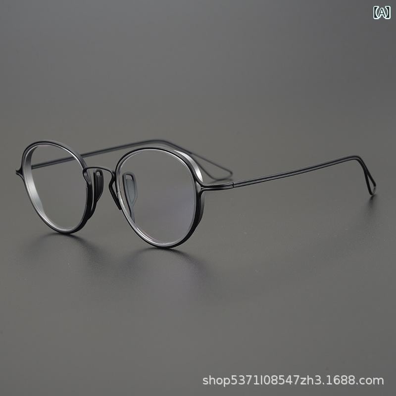 眼鏡 メガネ レディース メンズ 超軽量 純チタン ブルーライトカット 近視 高度数対応 フルリム ラウンドフレーム 丸メガネ ブラック ガンメタル グレー