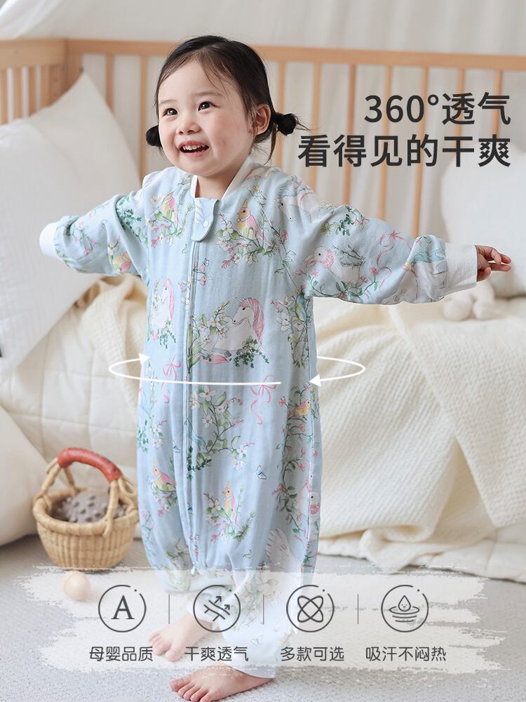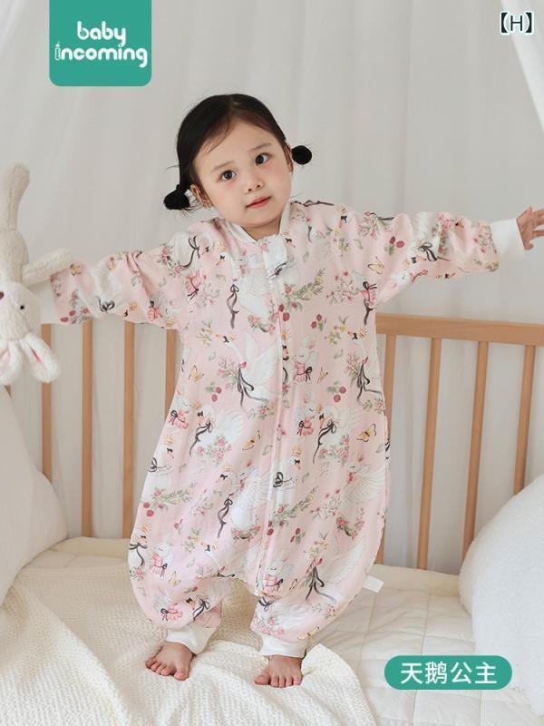 スリーパー ベビー キッズ 赤ちゃん 竹綿 ガーゼ オールシーズン 四季兼用 吸湿速乾 通気性 寝冷え防止 防寒 つなぎ ロンパース パジャマ A類 キャラクター柄 総柄 春夏秋用