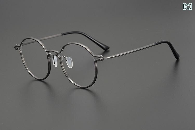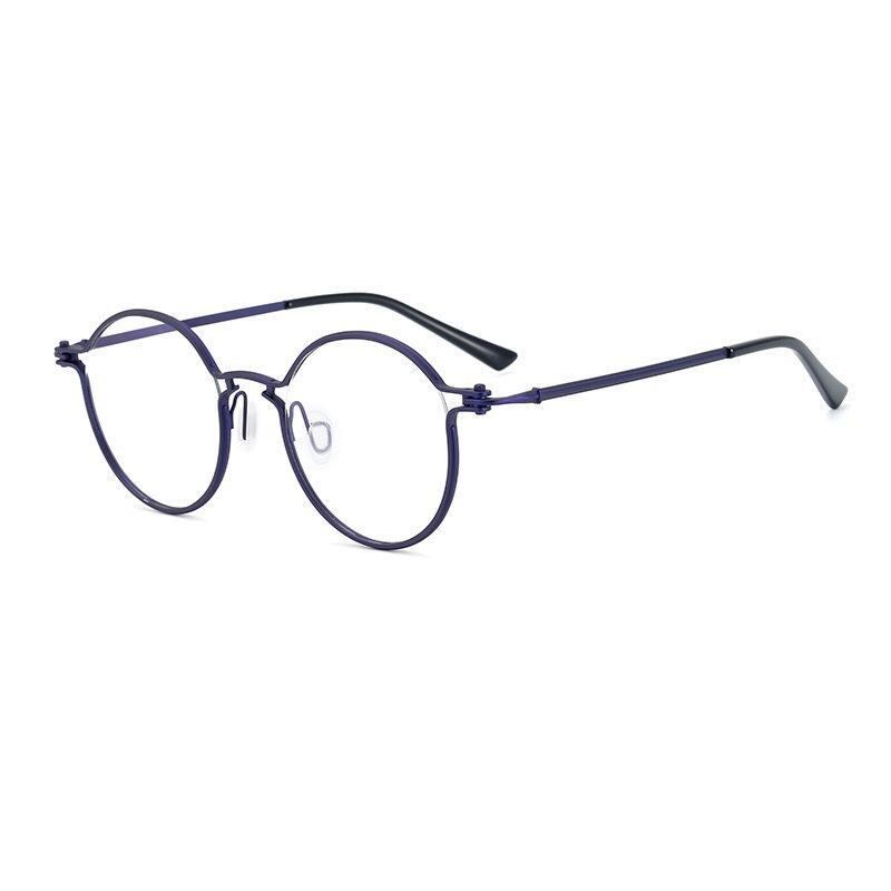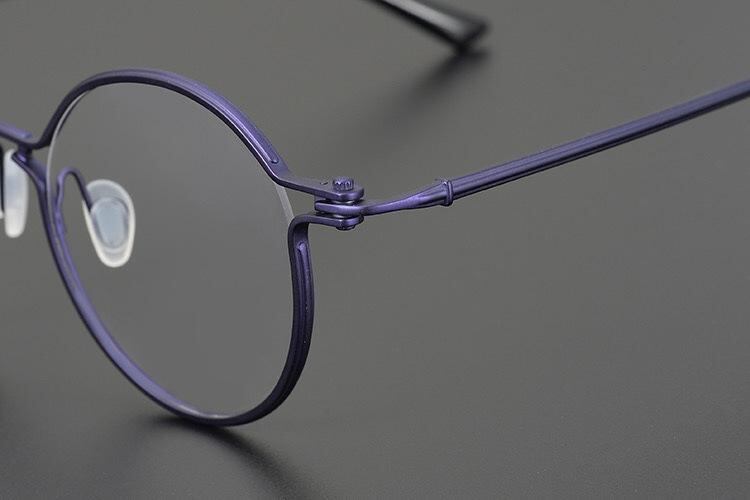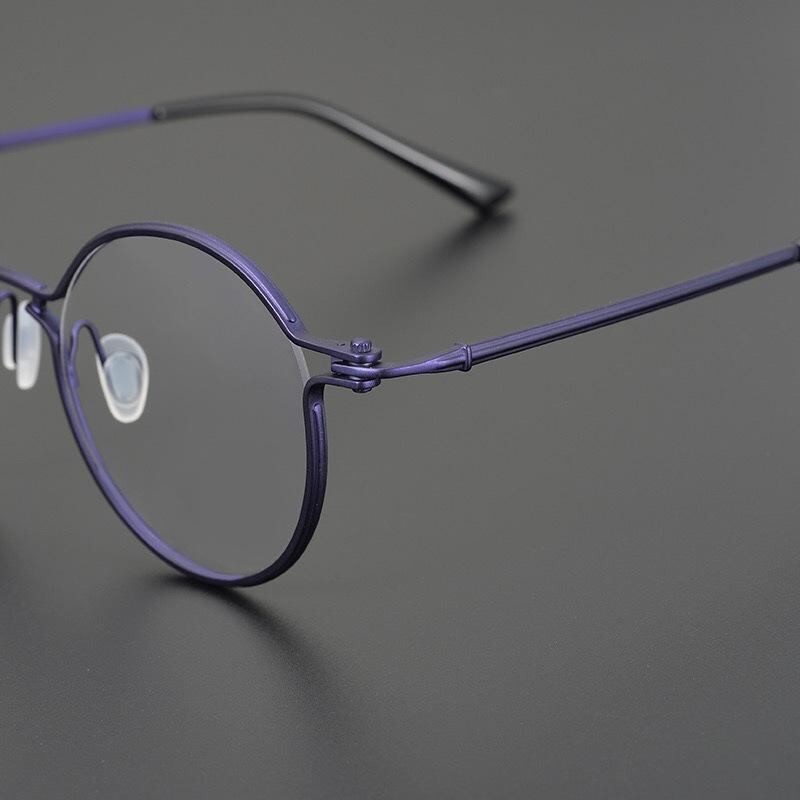 メガネ 男女兼用 レトロ ヴィンテージ 丸型フレーム ラウンドシェイプ 純チタン 近視対応 度付き対応 ビッグサイズ ラージフレーム フルリム 樹脂レンズ パープル ブロンズ ブラック ガンメタリック