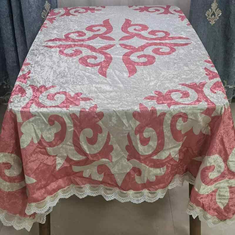 テーブルクロス 新疆風 少数民族柄 長方形 綿 ベロア レース フリル ボヘミアン風 幾何学模様 耐摩耗性 防塵性 耐熱性 断熱性 装飾