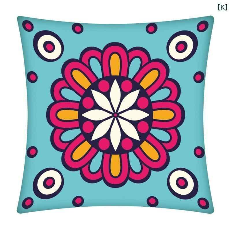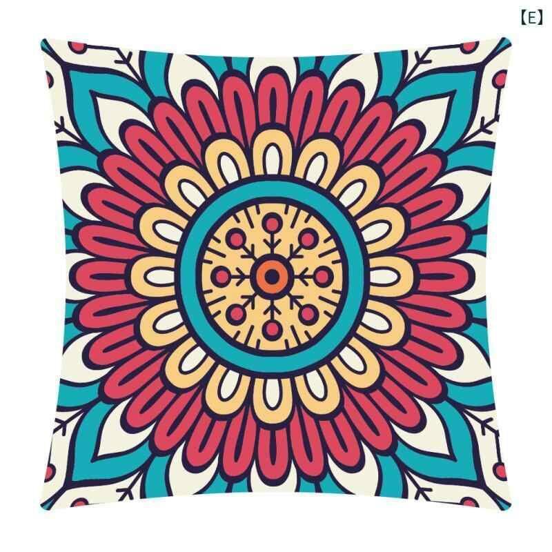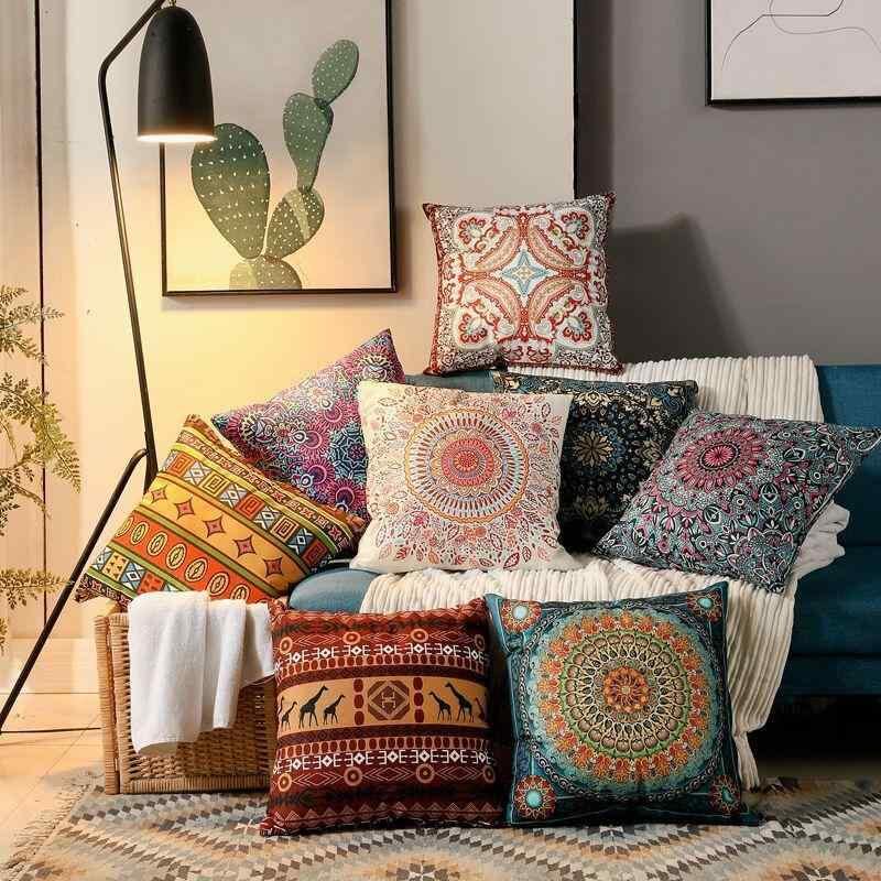 クッションカバー レトロ ボヘミアン 民族柄 エスニック スクエア 正方形 麻 リネン ソファ リビング 寝室 民泊 上質 高級感 カラフル