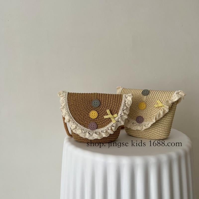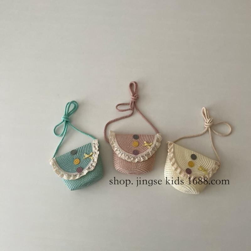 バッグ キッズ 女の子 ベビー インフルエンサー ファッション かわいい レース フリル ストロー 草編み ショルダーバッグ ポシェット ミニ 小さめ 個性的 ユニーク 通気性 軽量