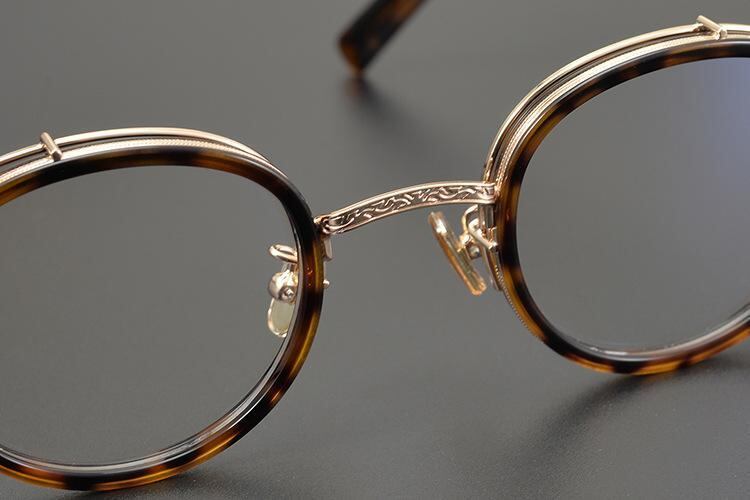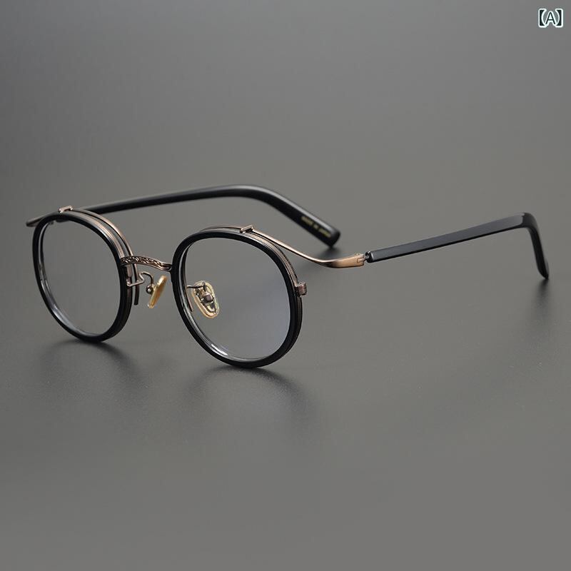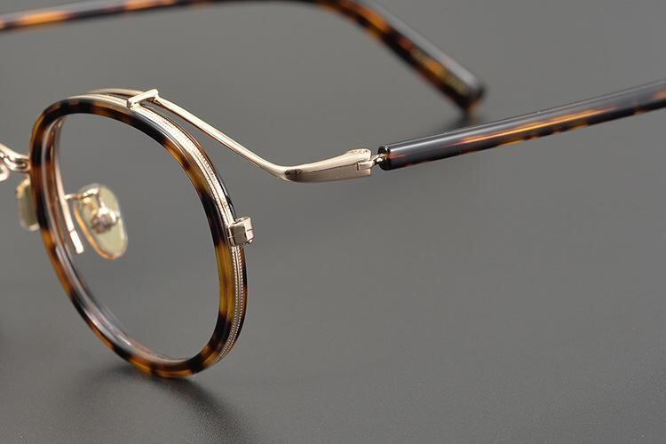 眼鏡フレーム 男女兼用 レトロ クラシック 丸型 ラウンド 純チタン 超軽量 度付き対応 フルリム ブラック デミ柄 べっ甲柄