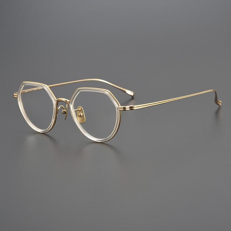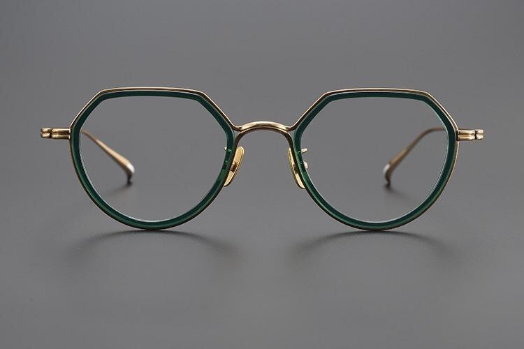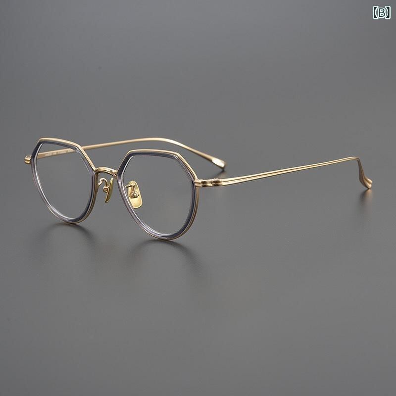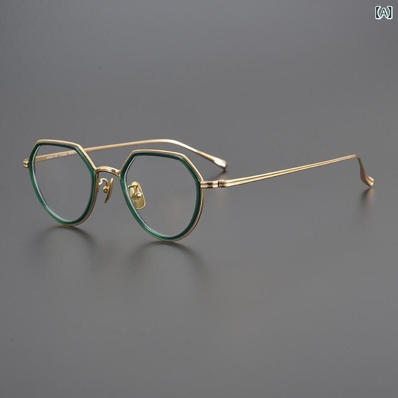 メガネ 女性用 超軽量 純チタン レトロ アシンメトリー 小顔効果 フルリム ブルーライトカット 度入り 近視対応 グリーン パープルグレー クリア 眼鏡フレーム