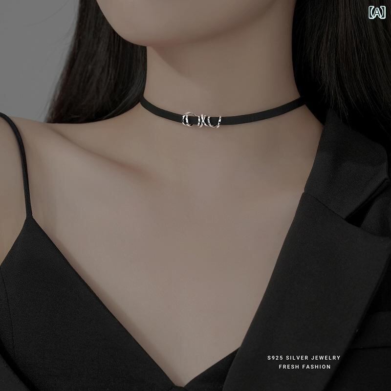 ネックレス レディース 925純銀 スターリングシルバー チョーカー 黒革紐 ブラックレザーコード 個性的 デザイン 幾何学模様 三角 ライン スクエア ジルコニア アクセント トレンド ファッション 大人カジュアル シンプルスタイル サイズ調整可能