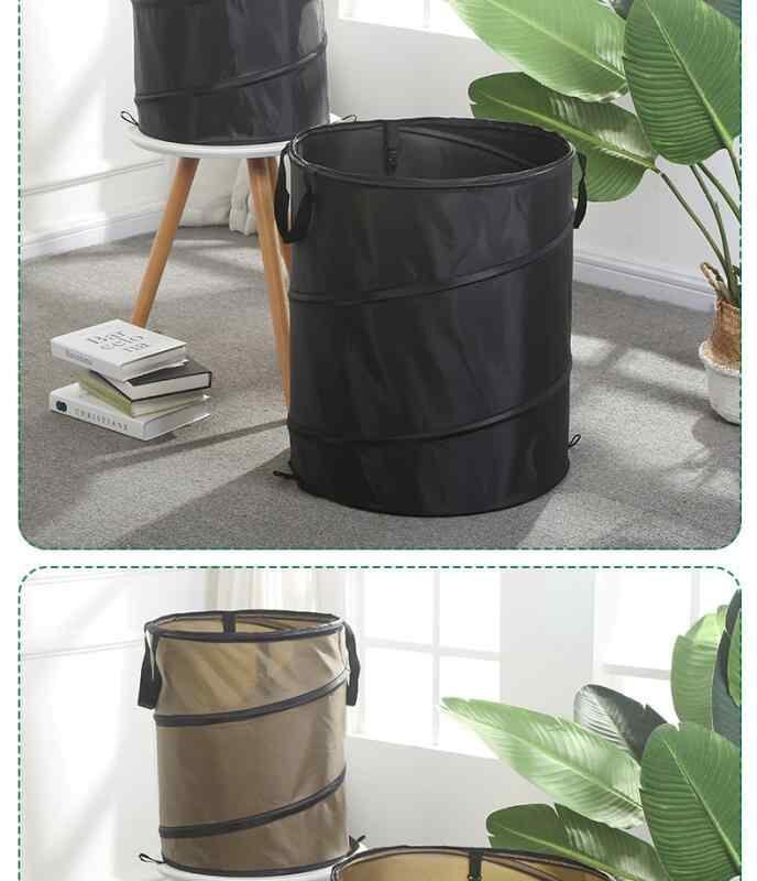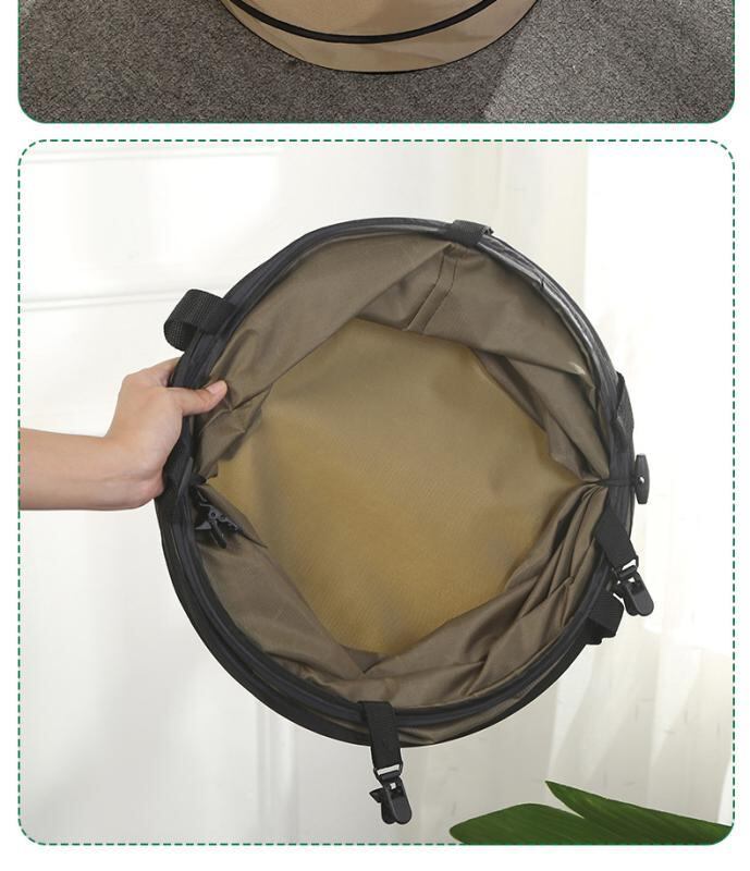 ゴミ箱 アウトドア キャンプ テント内 ポータブル 折りたたみ式 軽量 大容量 420Dオックスフォード布製 鉄製 ガーデン用 落ち葉収納バケツ ブラック ライトコーヒー ダークブラウン