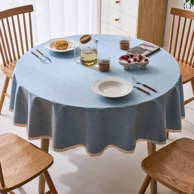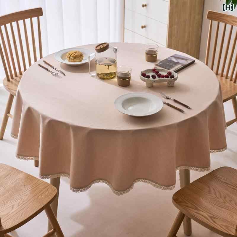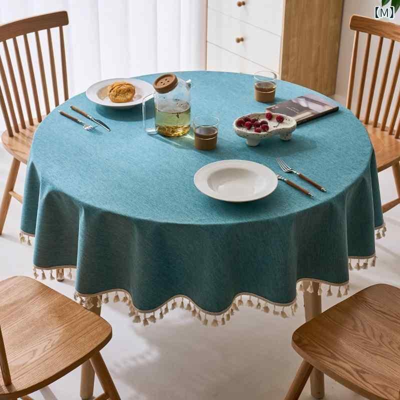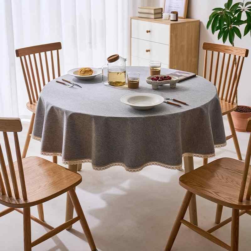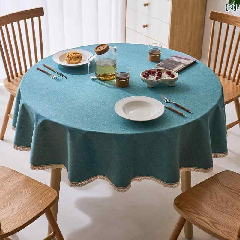 テーブルクロス 円形 綿麻風 防水 防油 撥水加工 耐熱 防汚 食卓カバー 家庭用 ダイニング 上質 高級感 お手入れ簡単 大判 丸型