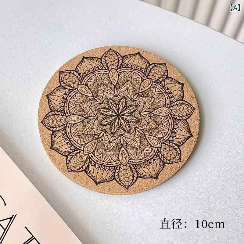 コースター 円形 丸型 コルク製 木製 プリント柄 滑り止め 吸水性 断熱マット 耐熱 ヨーロピアン レトロ アンティーク調 カップマット 茶托 コーヒー ワイン 食卓用 普段使い おしゃれ 敷物 | cybercart