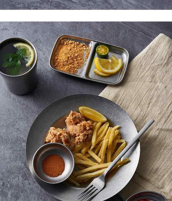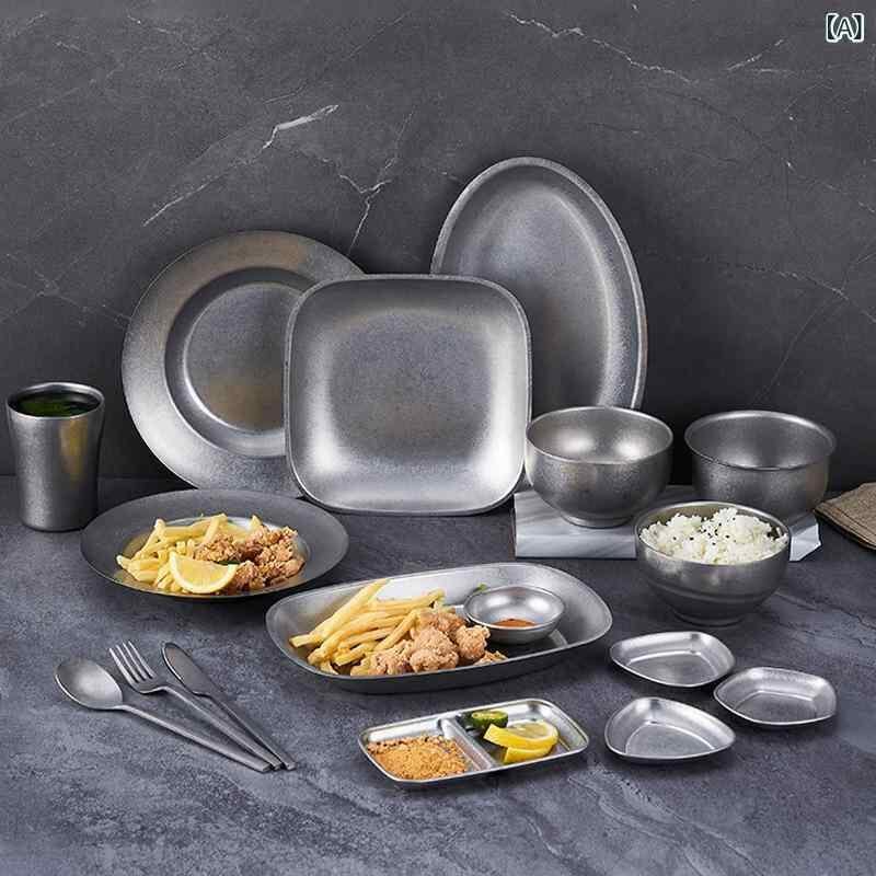 食器セット レトロ ヴィンテージ 高級感 304ステンレス製 プレート ボウル カトラリー ナイフ フォーク スプーン アウトドア キャンプ用品 ソロキャンプ 家庭用 ディナープレート ステーキ皿 アンティーク調 くすみカラー