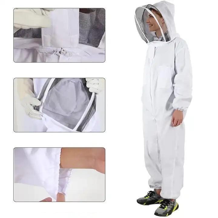 養蜂用 防護服 厚手 つなぎ オールインワン 高品質 羊革 キャンバス グローブ付き 白 蜂対策 養殖業 畜産 農業 ガーデニング 作業着 安全装備 全身保護 耐久性