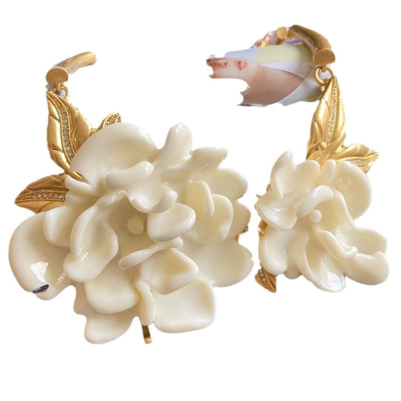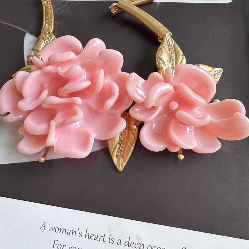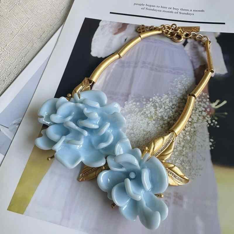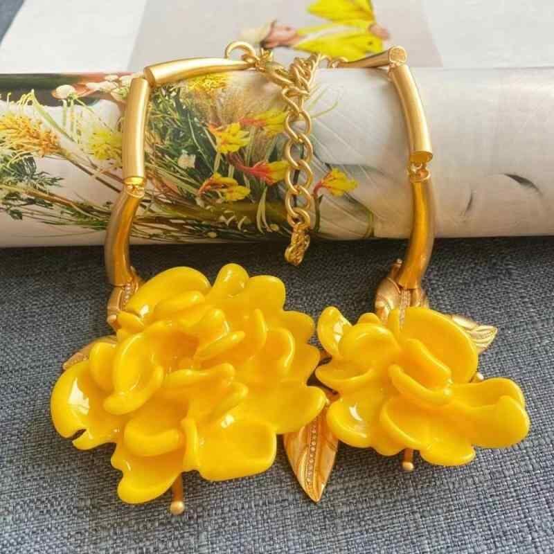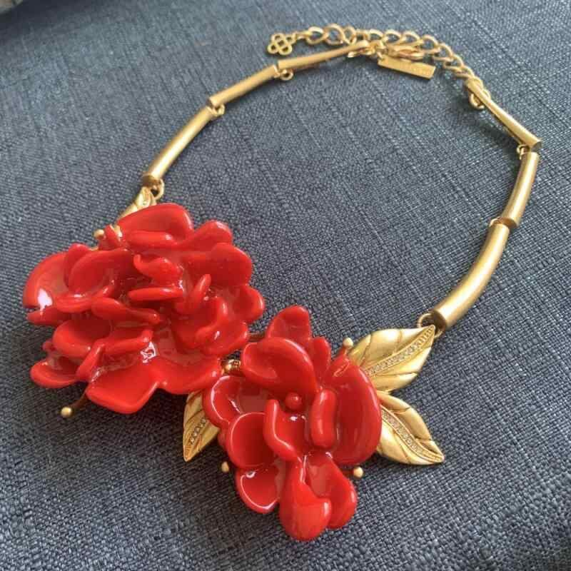ネックレス レディース レトロ ヴィンテージ 欧米風 牡丹 フラワーモチーフ 大ぶり 存在感 ゴージャス エレガント 高級感 首飾り 金属製 樹脂パーツ ホワイト イエロー レッドカラー アクセサリー カジュアル フォーマル お出かけ