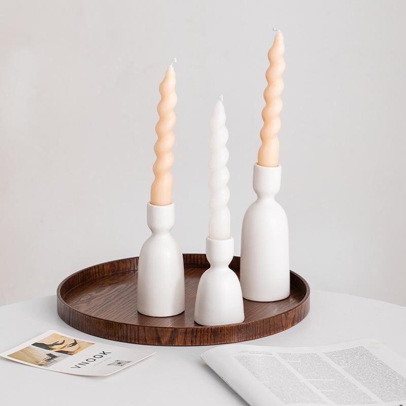 キャンドルスタンド 燭台 陶器製 北欧風 レトロ シンプル オブジェ 置物 インテリア雑貨 リビング 卓上 デスク 玄関 寝室 高級感 アイボリー ホワイト ブラック