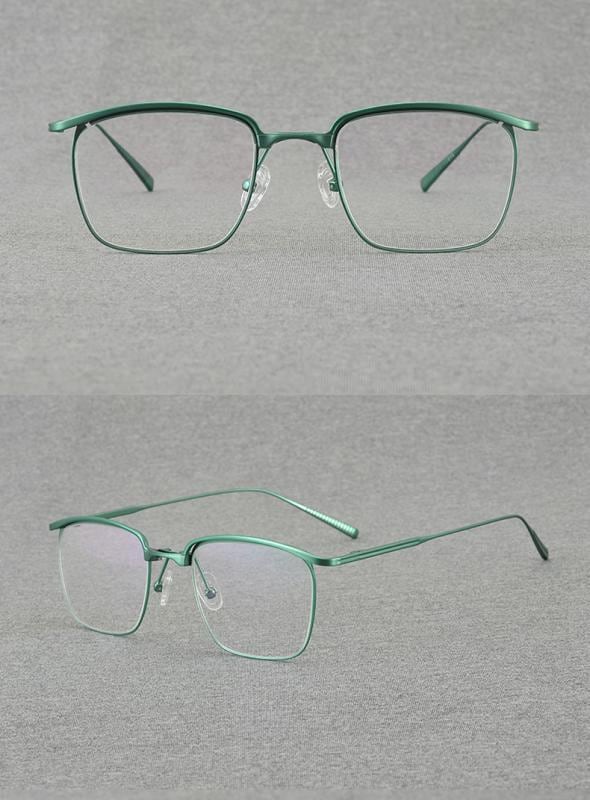眼鏡フレーム めがねフレーム 男女兼用 超軽量 純チタン ブローライン ビジネス レトロ クラシック 近視用 スクエア 大きいサイズ グリーン シルバー ブラック グレー