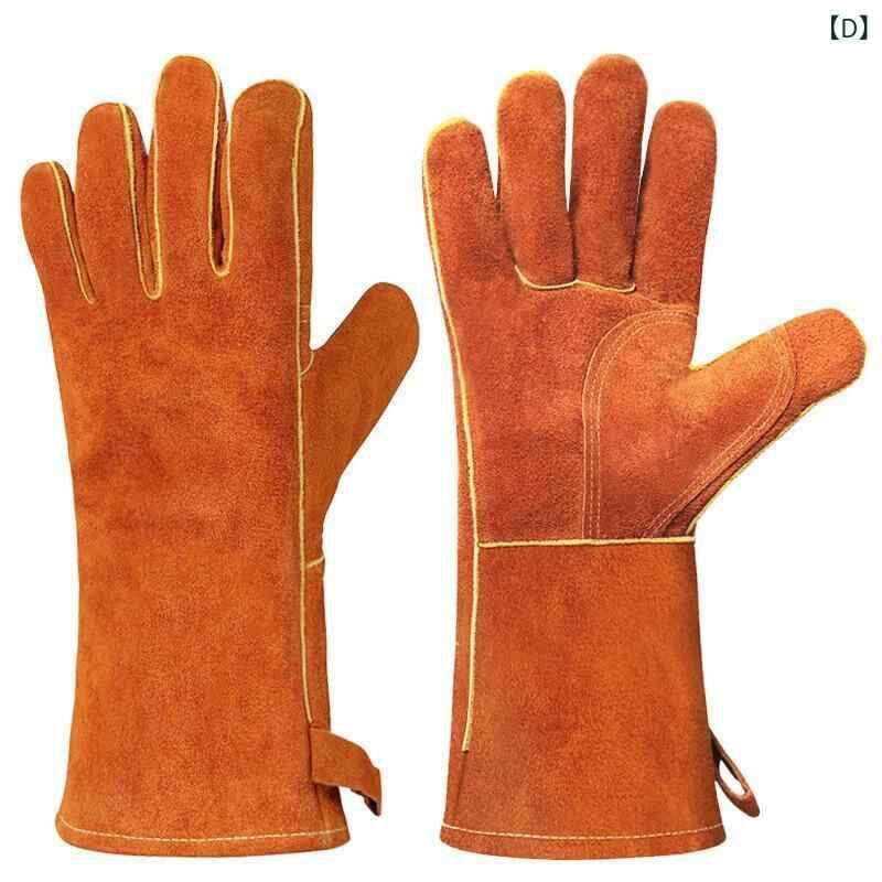 耐熱グローブ 牛革 本革 レザー ロング バーベキュー キャンプ 焚き火 オーブン 料理用 難燃 断熱 厚手 高温作業 アウトドア BBQ手袋