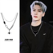 ネックレス 男女兼用 六芒星 スターモチーフ ダブルレイヤー チョーカー ペンダント 合金製 電鍍加工 ヒップホップ ストリート カジュアルファッション 個性的デザイン クール系 ライトラグジュアリー 上品