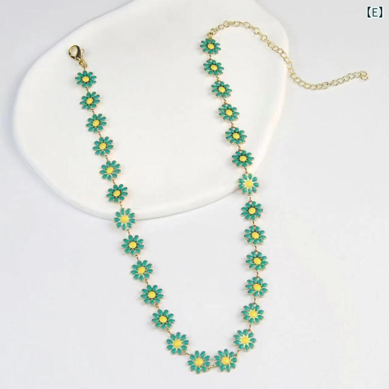 ネックレス レディース マルチカラー 小花 デイジー 花柄 滴油加工 エナメル ボヘミアン風 ショートネックレス 鎖骨丈 アクセサリー カジュアル フェミニン デイリーユース おしゃれ