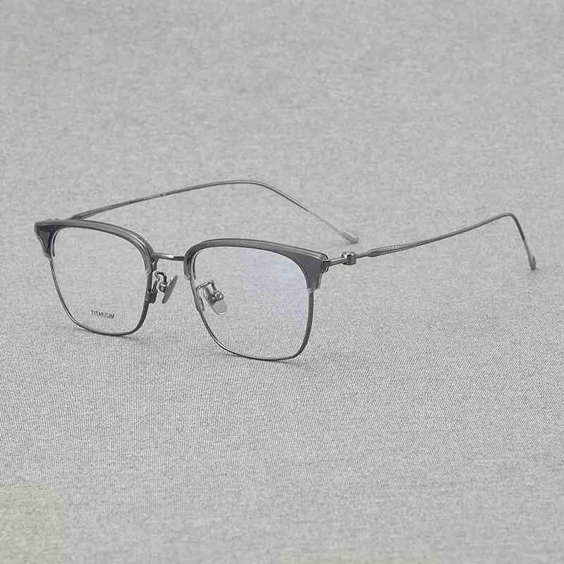 メガネ 男女兼用 ハーフリム セミリムレス スクエア ブローライン 純チタンフレーム ブルーライトカット 超軽量 軽量 ビジネス レトロ スタイリッシュ 度付き対応 クリアブラウン シアーブラウン