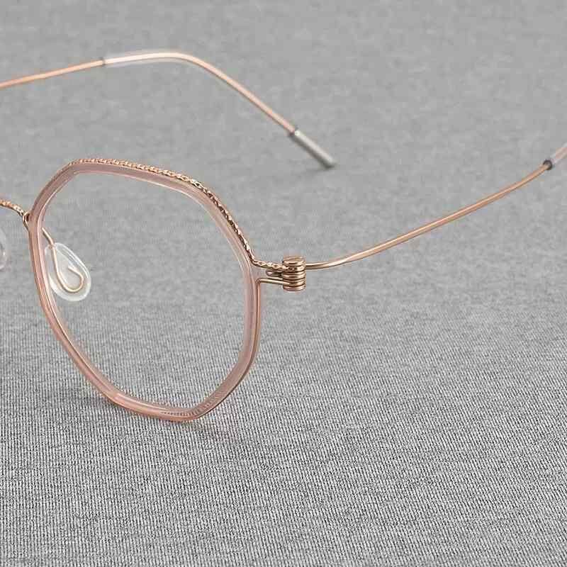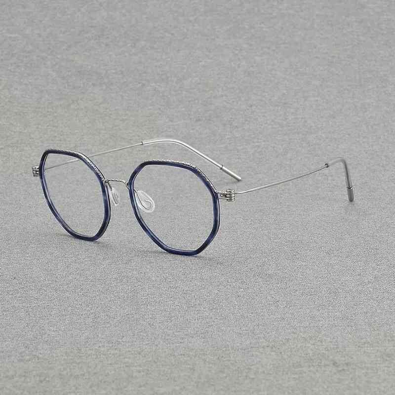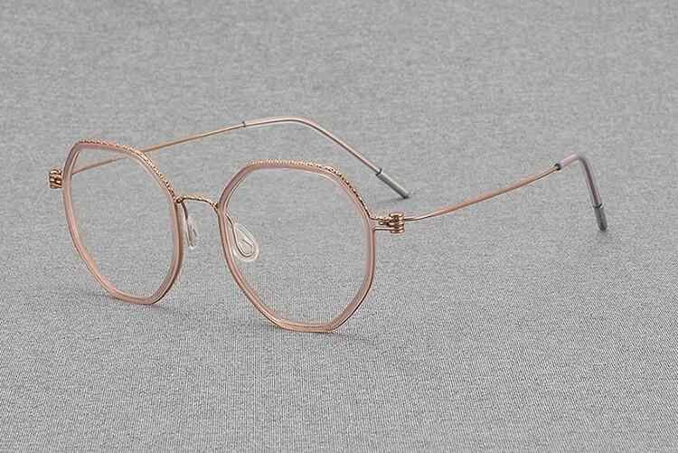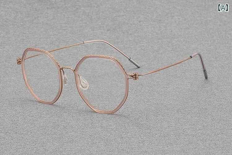 メガネ ユニセックス 超軽量 スクリューレス 多角形 ポリゴン レトロ クラシック 純チタン フルリム アイウェア 度付き対応 ファッションメガネ トランスペアレントピンク ローズゴールド クリアグレー ブルー シルバー
