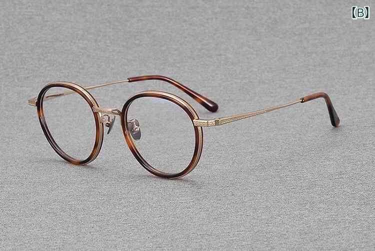眼鏡 男女兼用 純チタン 軽量 高度数対応 レトロ クラシック ラウンドフレーム フルリム 一山鼻パッド 度付き近視メガネ ブルー ヒョウ柄 ブラックゴールド グレー