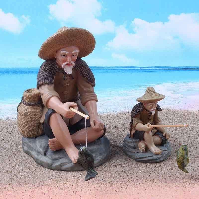 アクアリウム 樹脂製 釣り人 翁 フィギュア 水槽 多肉植物 テラリウム 箱庭 造景用 置物 小物 ミニチュア