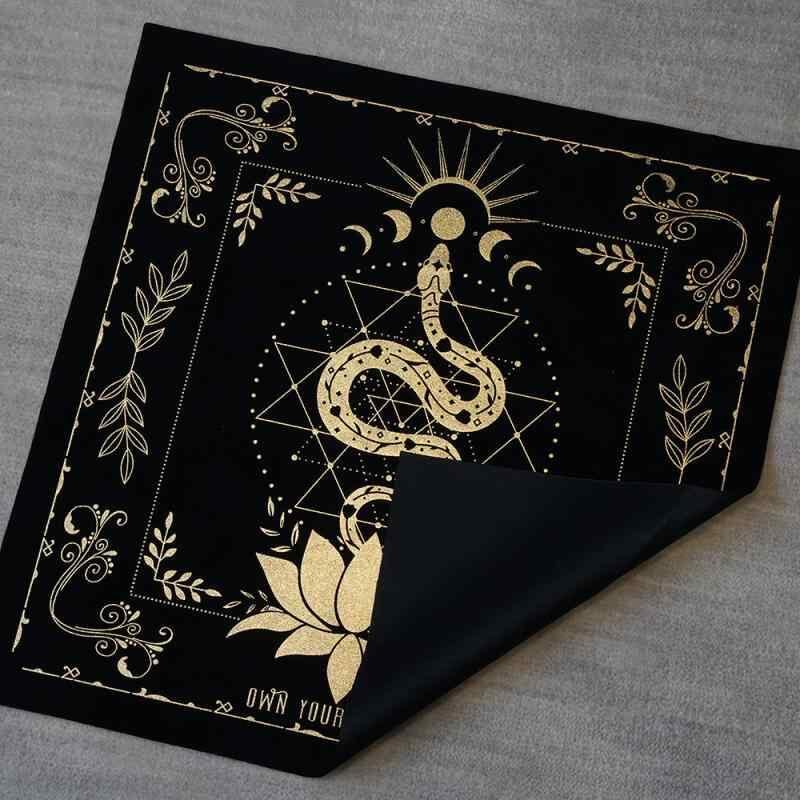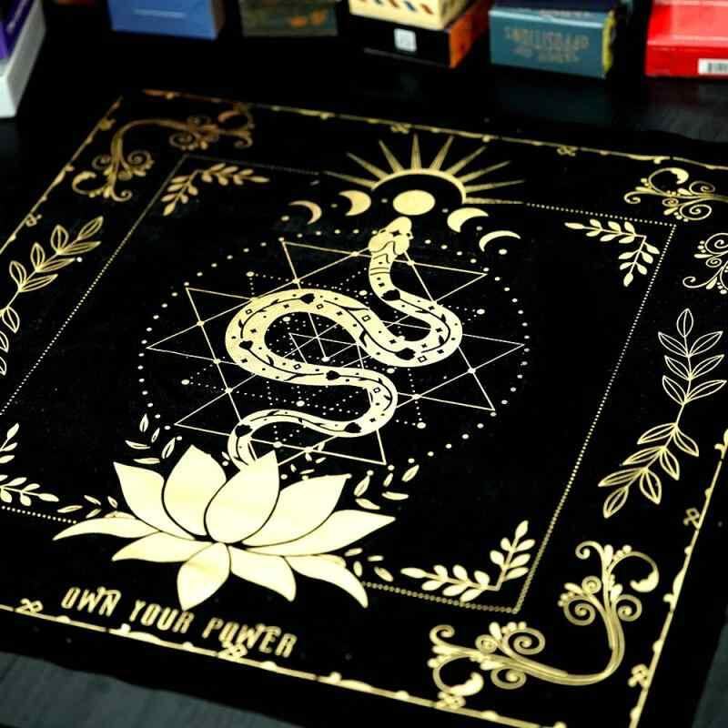 テーブルクロス タロットクロス ブラック ベルベット生地 箔押し加工 正方形 コットンリネン 北欧スタイル 魔術 祭壇 装飾