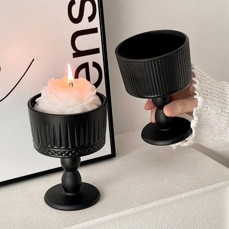キャンドルホルダー フレンチ レトロ ブラック フロストガラス製 アロマキャンドル用 家庭用 高級感 リビング 寝室 雰囲気作り ムード照明 間接照明 エレガント おしゃれ インテリア オブジェ